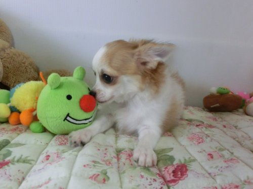 | コメント | 両親共にレッドのロングコート、いつも笑顔の穏やかで優しいママと大きなおめめの人懐っこいパパです。 ふわふわモコモコのとても毛ぶきのいい子です。 おめめ周りの黒い差し毛は薄くなってどんどん美人さんになりますよ! 甘えん坊で人懐っこい子です♪ しっかりサイズの子なので初めてチワワを飼う方や小さいお子様のいるご家庭でも安心して迎えられます。 トイレトレーニングも頑張っています! 2回目ワクチンも終わりました。(別途ワクチン代2回分かかります) 健康診断も問題ありませんでした。 すぐにお出かけデビューできますよ。 お写真より実物はもっと可愛いです! 是非、ご見学にお越しください。 |