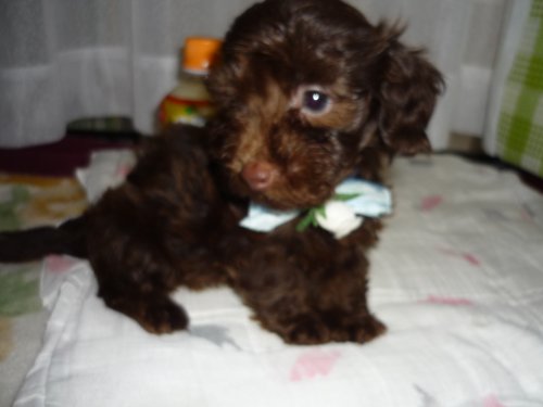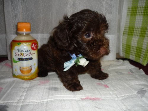 | コメント | 生後48日、可愛くしっかりしてきました(*^_^*) 父犬1.5Kのイケメンレッドティーカッププードル、 母犬は3.5Kの人懐っこく、子育て上手のチョコ&タンのダックスフンド この子は140gで生まれ生後48日の7月10日現在、680gのチョコレート色です。 離乳食をしっかり食べ元気に育っております。(^_^)/~ 是非会いに来て、この子を家族の一員にして下さい。 宜しくお願い致します<m(__)m> |