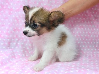 パピヨン 白茶(ホワイト&レッドセーブル) ♂(男の子) 千葉県【 ブリーダーズ 】