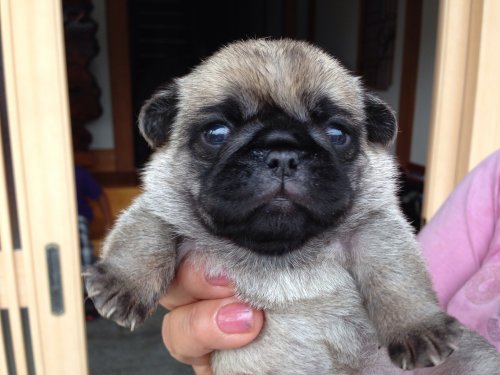 ネットで沢山のパグの子犬を見てきたところ家族みんながこの子を 家族に迎えたい!!と思い問いあわせ、遠方なので不安でしたが とても気さくなブリーダーさんで色々教えていだだき不安なく迎えることができました。 とても可愛い愛嬌ある顔で吠える事もなくたっぷり愛情を与えながら大切にしていきます。こんな可愛い子に出会えた事に感謝です!!(静岡県 女性)