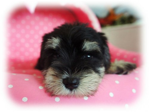 シュナウザーを主力にされているブリーダーさんだと認識しており、ボスちゃんはどうかなあと正直不安でしたがとても可愛く健康的なボスちゃんをいただきました。 掲載されていた写真より実物は想像以上に可愛くて即決し見学させていただいたその日に連れて帰りました。連絡をして、翌日行きますぅって勝手な申し出にも関わらず敏速かつ親切に対応して頂き大満足です。契約に対しても一つ一つ丁寧に説明してくださり、わかりやすかったです。この度は可愛いボスちゃんとのご縁をいただき、本当に有り難うございました。 (大阪府 女性)
