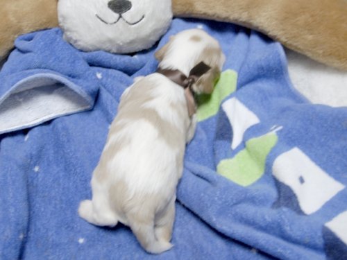 | コメント | お父さんJKCチャンピオン清盛君、お母さん小柄で可愛いセリカちゃんから生まれたダンディーな男の子(茶色リボン君) |