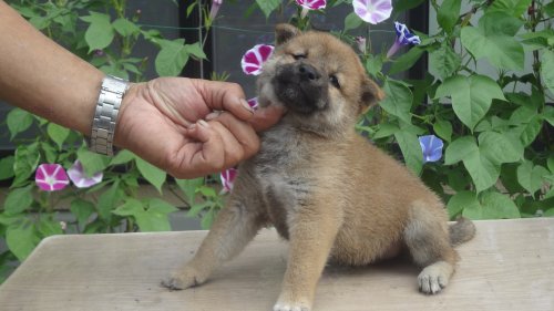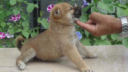 初めて見学で伺った際に、並んで日向ぼっこをしている親犬たちを見て、その時点で高橋さんなら安心だと感じました。事前に希望していたこともあり、母犬と父犬を先に見せていただきましたが、母犬のあまりの人懐こい性格にやられてしまい、実は子犬を見る前に是非譲っていただこうという気持ちになっておりました。 見学の時、譲渡の時といろいろな話をさせてもらい、小さな気付きなども折り込んで教えてもらえるのでやはり柴犬ならこうした専門の方が信頼出来ます。 子犬が我が家に来て二週間が経ち、きょうだいのなかでも一回り小さかったこともあり、やはり成長もやや遅い感じではありますが、母性を刺激された先住犬が頑張って見守ってくれており、予想外ではあるものの家族全員一安心です。 この度は本当にありがとうございました。この子が幸せになれるよう精一杯向き合っていきます。 なお、今後検討されている方への注意事項をひとつだけ書いておきます。問い合わせや見学希望に対しての高橋さんからの返信は電話です。メールでの返信ではありませんので気を付けてください。(宮城県 男性)