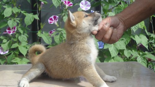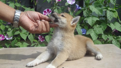 初めて見学で伺った際に、並んで日向ぼっこをしている親犬たちを見て、その時点で高橋さんなら安心だと感じました。事前に希望していたこともあり、母犬と父犬を先に見せていただきましたが、母犬のあまりの人懐こい性格にやられてしまい、実は子犬を見る前に是非譲っていただこうという気持ちになっておりました。 見学の時、譲渡の時といろいろな話をさせてもらい、小さな気付きなども折り込んで教えてもらえるのでやはり柴犬ならこうした専門の方が信頼出来ます。 子犬が我が家に来て二週間が経ち、きょうだいのなかでも一回り小さかったこともあり、やはり成長もやや遅い感じではありますが、母性を刺激された先住犬が頑張って見守ってくれており、予想外ではあるものの家族全員一安心です。 この度は本当にありがとうございました。この子が幸せになれるよう精一杯向き合っていきます。 なお、今後検討されている方への注意事項をひとつだけ書いておきます。問い合わせや見学希望に対しての高橋さんからの返信は電話です。メールでの返信ではありませんので気を付けてください。(宮城県 男性)