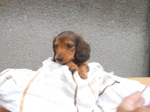 約束の時間より早く到着したのですが、上山さんと、お母様に心よく迎えて頂き、親切で丁寧な対応、ありがとうございました。 ネットで見たダックス君も可愛かったですが、実際に見たダックス君は、想像以上に可愛く、とても良かったです。 帰ってからも、電話で様子など聞いて頂き、嬉しかったです。 可愛い、ダックス君と巡り会えて、有難うございました。(大阪府 女性)