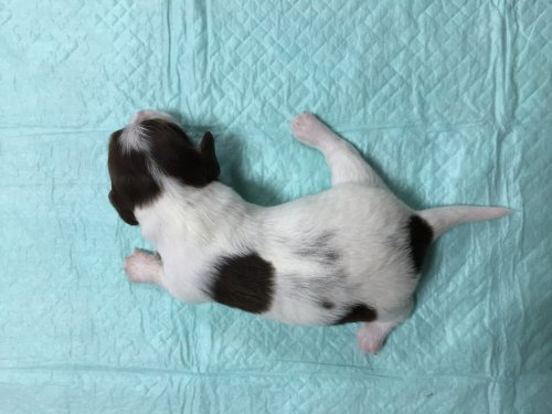 | コメント | パイボールドカラーは、レアカラーですので、余り見かけないない珍しいカラーです。 クリーム色ではなく、真っ白の毛色をベースに、チョコ色の牛柄の様な模様で綺麗です。 子犬達の両親犬とも、先祖は良血統で構成されております。 まだお譲りできる月数ではありません。お引き渡しは離乳完了し、子犬の体調を考慮しなから、9月から可能となります。 但し、神奈川県横須賀市の当方まで引き取りに来て頂ける方を募集しております。【動物愛護法が改正され、対面販売しないと違法になる為】 初回ワクチン代込み、簡易健康診断込み、血統書代 、全て込みの価格です。 子犬がこのまま健康に育ち、欠点、疾患等が、なかった場合のお値段です。 目が開きました‼︎ 歩き回りだしました。兄弟達と、じゃれ合い沢山遊び、寝て、ミルク飲み、寝るの日々です。 母犬、父犬、人間と沢山触れ合いながら、母犬のオッパイを一杯飲み、スクスク成長している最中です。 |