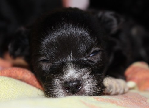 | コメント | 元気一杯、離乳食も良く食べ元気一杯成長しております。 毛色はブラックにポイントでホワイトが入っております。 見学開始致しますので是非会いにいらしてください。 |