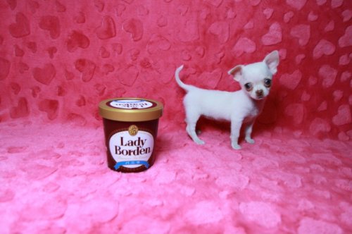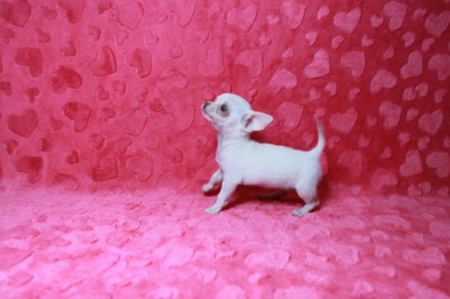 | コメント | ★☆★☆★☆★☆★極小の超可愛いスムースチワワちゃんをご紹介します★☆★☆★☆★☆★ ◆父親クリーム&ホワイト(ロング) ◆母親ブラックタン&ホワイト(スムース) ◆毛色:ホワイト ◆7月28日現在の体重:460g ◆人懐こい明るい性格です♪ ◆欠点:噛み合わせ・ヘルニア等は今のところ御座いません♪ ◆極小ちゃんですが食欲も有りとても元気です♪ ◆この仔に興味のある方は気軽に問い合わせてください♪ |