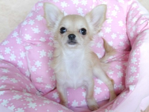 チワワ(ロング) オレンジ&ホワイト/父はJKC.チャンピオン/小振りサイズ予想です。 ♀(女の子) 愛知県【 ブリーダーズ 】