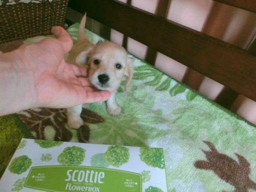 | コメント | パパ:ブラックタンロング2.8k ママ:クリームロング2.7k ※ ちょっと垂れた愛くるしい目がチャームポイント ※ 希少クリームカニヘンちゃん ★性格 陽気で甘えん坊 無駄吠え無し どの子とも仲良く遊ぶ社会性のある子 従順で躾易い子 ★容姿 ショータイプでは無く一般ご家庭に好みの胴とお鼻が短いタイプ 人気のクリームのカニヘンちゃん ちょっと垂れた目が可愛い ★健康状態・・良好 混合ワクチン済・健康診断良好・駆虫済でのお渡し (健康診断書とワクチン証明書有添付)親元に自然に乳離する迄、充分居て愛情・成長期の免疫もしっかり貰っていて心身共に安定しています。 ★環境・・・仲間・私達人間とお迎えまでずっと一緒に生活し豊かな表情のある穏やかで社会性のある性格が培われています。当方と同じ環境と言える人の生活にも直ぐに馴染みます。 親から早く離されたり、兄弟仲間と遊んだ経験の少ない子は突然理由なくキレたり、獰猛だったりと昨今、問題視されています。 その点当方出身の子犬は、人慣れしていて獰猛だったりかんしゃくを起こすことも無くお迎え後甘えて直ぐに慣れてくれると喜びの声を頂いております。明るく元気ですが、お隣等が近いマンションにも適した穏やかさです。 ★躾 ゲージの中でのトイレシートでの躾済後のお渡し。お迎え後の違った環境でのお家での躾は、アドバイスします。 *アニコム動物保険の代理店 (動物保険会社では、倒産した時に国が保証する2つの保険会社の1つ)手厚い補償で好評の日本最大の動物保険会社です。(ブリーダーショップとしては、当店が唯一認定店)・・・アニコム1ヵ月100%動物保険プレゼント。 ※ 動物取扱士・家庭犬トレーナー・トリマー・小動物看護士・ペット繁殖指導員の居るブリーダーショップ ★アフターフォロー:繁殖直売のブリーダーショップで、中間業者やペットショップに渡すことをしないで、一般ご家庭の飼い主様にのみお渡ししています。 きちんとお迎え先が分かることにより一生に渡り心身共の健康に貢献していきたいと願っています。 <プレゼント> ★ アニコム100%1ヵ月保険 ★ 躾のDVDとプリント ★ スターターグッズ わんこ母子手帳・フード・ブランケット ※ 飼い主様準備:ゲージ(手配のお手伝い無料)・トイレシート・フード皿・ベッド・給水器等 ※始めての方でも安心・いろいろとアドバイスいたします。 <当舎の特徴> ★ 心身共に管理できる少数の子犬を育てています。 ★ 多種カード会社認定店・・・VISA・Master・UC・JCB・AMERICANEXPRESS・Nicos・Diners・DC・UFJ ★ 多頭飼いや2頭目をお迎えの方にも適した社会性を身につけた子犬をお譲りしている実績有り。 ★ 引越や旅行・夏・冬等の計画でお迎え延期でも無料でお預かり。 ★ ワクチンと健康診断書添付 ★ ♂犬は当方誕生子犬を残さず、他舎の子犬を迎え育て近親交配が無い。よって欠陥の子犬が誕生リスクが少ない ★ 子犬に問題が起きやすい老犬ではなく、若い両親でブリーディング。 ★感謝・・・当舎の交配犬は、若いうちに里親様にお譲り(当方からお迎え又その方の紹介・近隣方:面接の上、可愛がっていただける方) |