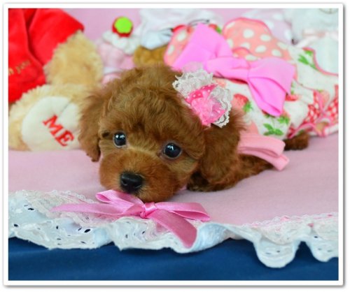 | コメント | ☆☆.。.:*・゜*:.。.まん丸おめめのおっとりレッドちゃん.。.:*・゜*:.。.☆☆ 大きなまん丸おめめで、マズルが詰まった女の子♪ 色素ポイントはすべて真っ黒で、毛量・毛質・巻きともに申し分ございません 骨量・体の幅があるので体重は載っていますが、 ぐっと詰まったコンパクトなドワーフ体型です ~~成犬時はタイニーサイズ予想~~ 性格はおっとり癒し系、とても落ち着きのある女の子です 現在のところその欠点・異常はございません PRAは発症しません 夏価格で通常よりもお安くしております 東北道 水沢ICから15分、東北新幹線水沢江刺駅より20分、是非ご見学にいらしてくださいね。 ※遠方の方でも対応可能ですのでどんどんお問い合わせくださいませ よいご縁がございますように*:.。.☆☆.。.:*・゜*:.。.☆☆ |