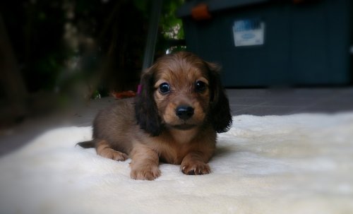| コメント | お父さん シェーデットクリーム jkcチャンピオン お母さん ブラック&タン 両親jkcチャンピオン 成長と共に薄いレッドになると思います。 ご飯もたくさん食べて 良く寝て元気に遊んでます。 兄弟の中でも耳の大きな子です。 耳の大きなダックスフンドは とても可愛いですよ。 |