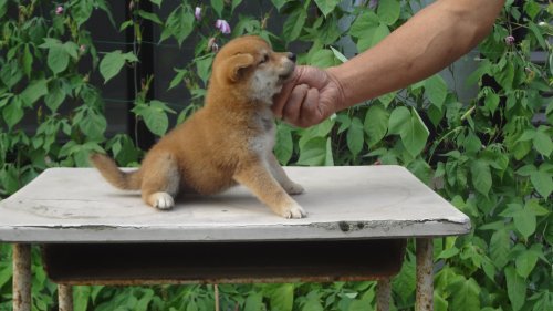 初めて見学で伺った際に、並んで日向ぼっこをしている親犬たちを見て、その時点で高橋さんなら安心だと感じました。事前に希望していたこともあり、母犬と父犬を先に見せていただきましたが、母犬のあまりの人懐こい性格にやられてしまい、実は子犬を見る前に是非譲っていただこうという気持ちになっておりました。 見学の時、譲渡の時といろいろな話をさせてもらい、小さな気付きなども折り込んで教えてもらえるのでやはり柴犬ならこうした専門の方が信頼出来ます。 子犬が我が家に来て二週間が経ち、きょうだいのなかでも一回り小さかったこともあり、やはり成長もやや遅い感じではありますが、母性を刺激された先住犬が頑張って見守ってくれており、予想外ではあるものの家族全員一安心です。 この度は本当にありがとうございました。この子が幸せになれるよう精一杯向き合っていきます。 なお、今後検討されている方への注意事項をひとつだけ書いておきます。問い合わせや見学希望に対しての高橋さんからの返信は電話です。メールでの返信ではありませんので気を付けてください。(宮城県 男性)