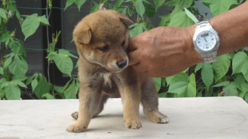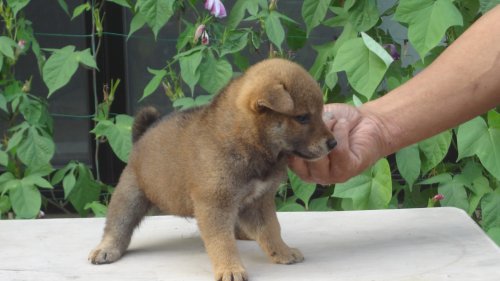 初めて見学で伺った際に、並んで日向ぼっこをしている親犬たちを見て、その時点で高橋さんなら安心だと感じました。事前に希望していたこともあり、母犬と父犬を先に見せていただきましたが、母犬のあまりの人懐こい性格にやられてしまい、実は子犬を見る前に是非譲っていただこうという気持ちになっておりました。 見学の時、譲渡の時といろいろな話をさせてもらい、小さな気付きなども折り込んで教えてもらえるのでやはり柴犬ならこうした専門の方が信頼出来ます。 子犬が我が家に来て二週間が経ち、きょうだいのなかでも一回り小さかったこともあり、やはり成長もやや遅い感じではありますが、母性を刺激された先住犬が頑張って見守ってくれており、予想外ではあるものの家族全員一安心です。 この度は本当にありがとうございました。この子が幸せになれるよう精一杯向き合っていきます。 なお、今後検討されている方への注意事項をひとつだけ書いておきます。問い合わせや見学希望に対しての高橋さんからの返信は電話です。メールでの返信ではありませんので気を付けてください。(宮城県 男性)