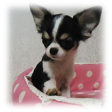 | コメント | 性格の穏やかな優しい男の子です。 同世代の子犬やママ犬とも仲良く遊び、 小さな子にも優しくできております。 お顔だけでなく、性格面でもオススメの男の子です。 父も母も可愛く、賢く、お顔もですが性格面でも良い子たちです。 見学時、両親にも会っていただけます♪ 祖先には有名CHも多数おりますので 将来的にも可愛いお顔立ちになることかと思います。 将来は普通サイズ(2kg前後)予想です。 現在の体重は1.4kgになります。 食欲もあり、健康面で現状心配な点はございません。 父:ブラックタン&ホワイト(JKCCHベッカム君孫) 母:ブラックタン |