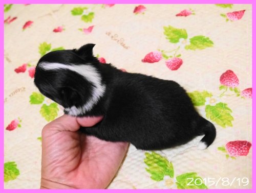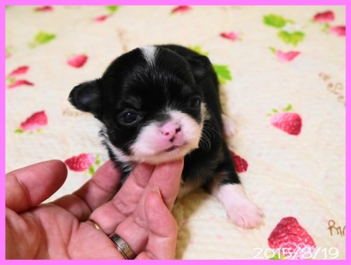 | コメント | パパはチョコマールのハヤト君。 ママはブラックタン&ホワイトのレディちゃん。 ママのレディはJKCチャンピオン直娘で、体重1.7キロととっても小さな女の子ちゃんです。 帝王切開で女の子ちゃん3頭を出産しました。 両親共にとても人懐こくてかわいらしい子なので、ぜひ素敵なご縁があってくれたらと思います。 ご見学やお問い合わせをお待ちしております。 |