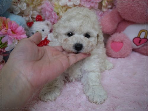 この度は有難うございました!!当家にはトイプードルの女の子が1人居て、お留守番が多いため1人じゃかわいそうなので近くで探していたのですが、なかなかいなく、サイトで検索・・その結果、娘の一目ぼれで・・・最初はメールでのやり取りでしたが、解らないことも多く、メールに携帯も書いてあったので連絡もしましたが、メールand携帯の対応もしっかりしていただき、本当に親切、丁寧に対応をして頂きました!本日、家族の一員になりましたが可愛いし、大人しく、しつけもちゃんとして頂き感謝です!今後とも宜しくお願いいたします。(福岡県 男性)