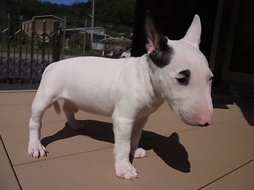 | コメント | ミニチュアブルテリアの男の子です。 お父さんは、JKCチャンピオンのイケメンくん! お母さんは、小柄(体重9.7)でおとなしい子育て上手な子です。 片方に眉毛の可愛い子です。まだまだ性格等は、これからですが お母さんの優しい性格を受け継いでくれていると思います。 見学大歓迎ですので(要予約)是非会いに来てあげてください! |