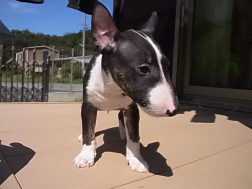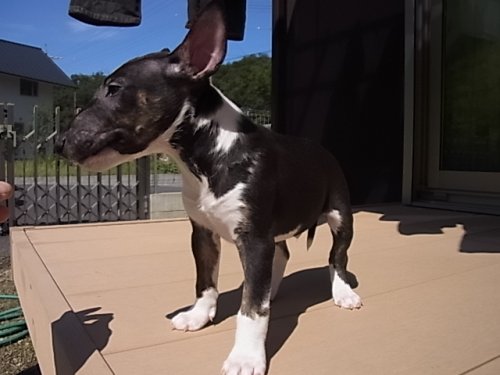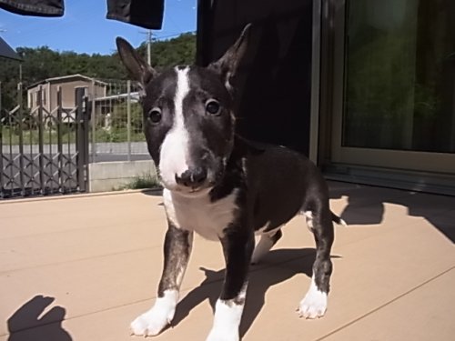| コメント | ミニチュアブルテリアの男の子です。 お父さんは、JKCチャンピオンのイケメンくん! お母さんは、小柄(体重9.7)でおとなしい子育て上手な子です。 ブラック&ホワイトの可愛い子です。まだまだ性格等は、これからですが お母さんの優しい性格を受け継いでくれていると思います。 見学大歓迎ですので(要予約)是非会いに来てあげてください! |