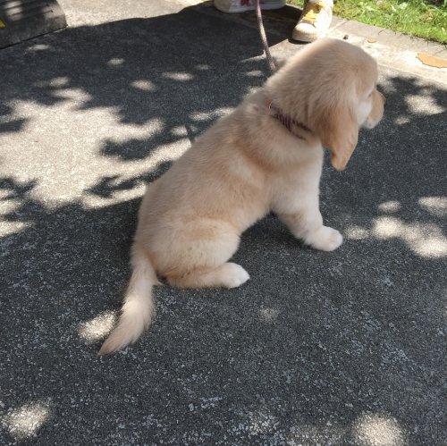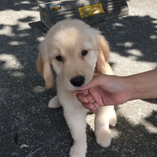 8月に十年間飼っていたゴールデンを病気で無くし、新しい犬を飼おうか迷っていた時このサイトを見つけ中村ブリーダーの仔犬に一目惚れしてしまい、夜分でしたが連絡を入れさせていただきましたが直ぐにお返事頂きビックリでした。 引き取りに伺った時も母犬や兄弟たちにも逢わせてい頂き優しい御夫妻の人柄が良く伺えました。 帰るときも「遠くからおいでなので」と離乳食やウエットティッシュ、ゴミ袋、水、食事用のカップまで用意していただき恐縮してしまいました。 お見送りの時の寂しそうな顔が印象的でした。 大事に育てます。 ありがとうございました。 (岐阜県 男性)