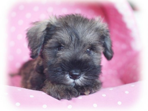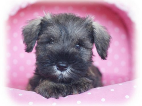 シュナウザーを主力にされているブリーダーさんだと認識しており、ボスちゃんはどうかなあと正直不安でしたがとても可愛く健康的なボスちゃんをいただきました。 掲載されていた写真より実物は想像以上に可愛くて即決し見学させていただいたその日に連れて帰りました。連絡をして、翌日行きますぅって勝手な申し出にも関わらず敏速かつ親切に対応して頂き大満足です。契約に対しても一つ一つ丁寧に説明してくださり、わかりやすかったです。この度は可愛いボスちゃんとのご縁をいただき、本当に有り難うございました。 (大阪府 女性)