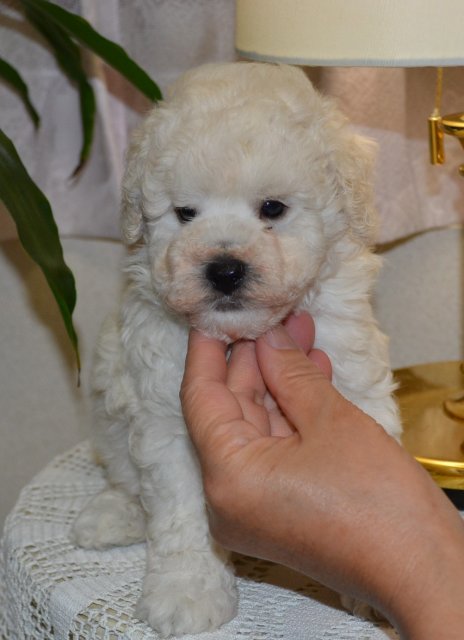 問い合わせをするとすぐに連絡をいただき、2日後に見学に行かせてもらいました。綺麗な応接室でワンちゃんとご対面。問い合わせた子は初めての応接室にガクブル震えていましたがそれが愛らしかったです。兄弟、ママ、パパにも会わせてもらい成長したらこの位というのがわかりました。お迎えもこちらの都合で予定より遅くなってしまいましたが快く引き受けて下さいました。ゲージ内では初日からちゃんとトイレシートでできました。すごーいえらーい!と感動でした。我が家に来てご飯を食べてくれず心配でメールをしたらすぐに電話くれ色々教えてくださいました。夜泣きは続きましたが、心を鬼にしシカト。鳴く時間も段々減っていきました。2週間たった今はリビングに放してもちゃんとトイレに行ってオシッコウンチできるようになりました。朝は家族が起きてくるとみんなにしっぽフリフリおはよー♡の挨拶をしてくれます。小学生が3人いますがナルが心配で学校から毎日走って帰ってくるようです。長年のトイプードルを飼うという夢が叶った長男は毎日とてもよくお世話をしてくれます。子供達は学校で嫌な事があってもナルがいるから頑張れる!と言っています。子供達の心も育ててくれています。ナル=ハワイで波の意味。ハワイではナルNalu(波)幸せを運んでくれる、絶え間なく訪れる幸せという意味です。 iPhoneから送信(埼玉県 女性)