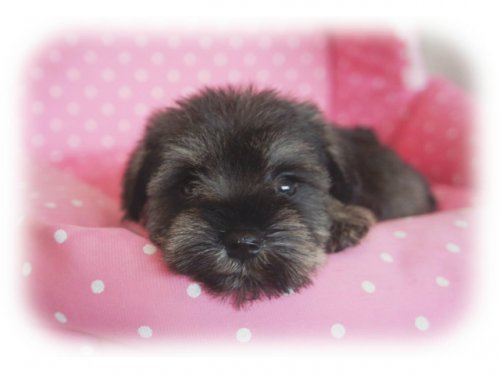 シュナウザーを主力にされているブリーダーさんだと認識しており、ボスちゃんはどうかなあと正直不安でしたがとても可愛く健康的なボスちゃんをいただきました。 掲載されていた写真より実物は想像以上に可愛くて即決し見学させていただいたその日に連れて帰りました。連絡をして、翌日行きますぅって勝手な申し出にも関わらず敏速かつ親切に対応して頂き大満足です。契約に対しても一つ一つ丁寧に説明してくださり、わかりやすかったです。この度は可愛いボスちゃんとのご縁をいただき、本当に有り難うございました。 (大阪府 女性)
