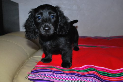 | コメント | 愛嬌たっぷりのミニチュア・ダックスフンド 真っ黒けの男の子 めちゃくちゃなつっこいです。 10月22日現在体重 1,9kg 楽しい家族になりますよ。 ワクチン2回分、血統書代込の価格です。 |