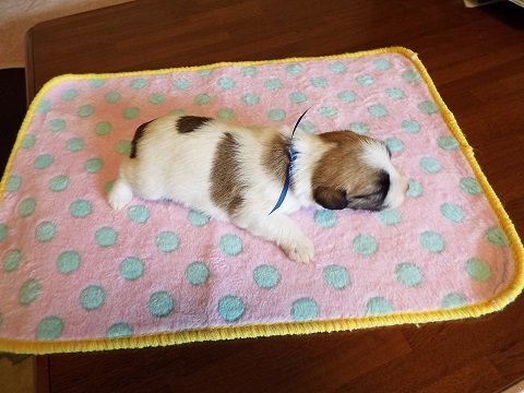| コメント | 父親・・・チャンピオン孫・白茶・ブロ-クン 母親・・・白茶・ブロ-クン 温和なママから誕生しました5頭兄弟のうちの1頭です! 綺麗に入ったフレ-ズのイケメン君です。 目が開き日々可愛くなって、更に可愛さ満点です! 断尾はしていません。 ご見学大歓迎! 子犬の飼い方、躾方など、アフタ-フォロ-も十分させて頂きます。 アジリティなどアウトスポ-ツにも向いています。 お気軽にご質問やお問い合わせをお待ちしています。 |