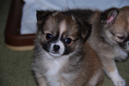 | コメント | とてもフレンドリーで、甘えっ子ちゃんです。 顔の黒い差し毛は綺麗になくなります. 耳はこれから立ちます。 両親ともレッド&ホワイト 父親はアメリカチャンピオンの孫 母親はアメリカチャンピオン(ユカヌバナショナルドッグショーでアワードオブメリット受賞)の直子。 JKCチャンピオンの孫 曽祖父は13ヶ国チャンピオン 両親共アメリカチャンピオン・JKCチャンピオンの血統が何本も入ってます。 父親の体重2.1kg 母親の体重は2kg。 この子の成犬時の体重は2~2.5kgだと思われます。 真っ直ぐな四肢と綺麗な背線、背中にいつも背負ってる尻尾・・・ペットとして可愛がって頂くのは勿論、ショーイングして楽しむ事も可能な子です。 現在、欠点はありません。 |