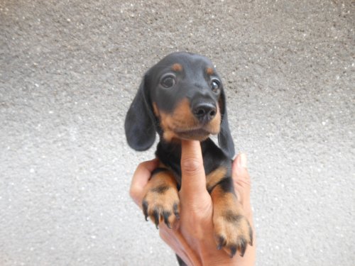 ミニチュアダックス スムース ブラックタンの子犬を探しまくる中、ブリーダーズさんのサイトから上山ブリーダーさんに辿り着きました。問合せ後すぐに連絡を頂き訪問に至る迄の間、度重なる問合せにメール、電話にて毎回本当に親切丁寧にお応え頂きました。神奈川県からでしたが安心して伺う事ができました。子犬対面当日は…なんと可愛い子犬でしょー!毛も艶々で元気いっぱいです!子犬、親犬の事やお世話の仕方、持ち帰り時の注意点等詳しく教えて頂き大切に育ているんだなぁと実感しました。連れ帰った後も子犬の状態を気にして連絡を下さいました。これからも相談させて頂こうと思っています。親切で知識も豊富な信頼できるブリーダーさんです。今回は元気で可愛い子犬をありがとうございました。(神奈川県 女性)