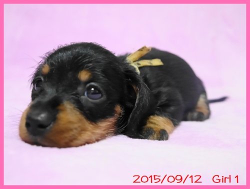 | 毛色 | ブラック&タン(パパはインターナショナルチャンピオン) | 出生地 | 千葉県 | |