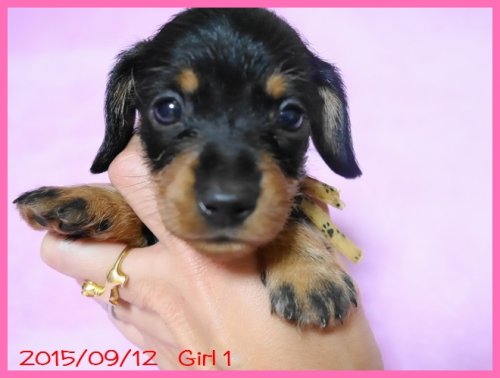 亡くなった愛犬達と同じ、 ワイヤーダックスの子犬を探していましたが、珍しい犬種という事もあり、 なかなか出会えませんでした。 諦めかけた頃、こちらのサイトで可愛い子犬を見つけ、思いきってメールをさせて頂きました。 遠藤ブリーダー様の迅速丁寧な対応で、 お陰様で無事に子犬を迎える事が出来ました。 本当にありがとうございました。 ブリーダーズ様にも感謝致します。 (北海道 女性)
