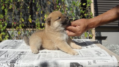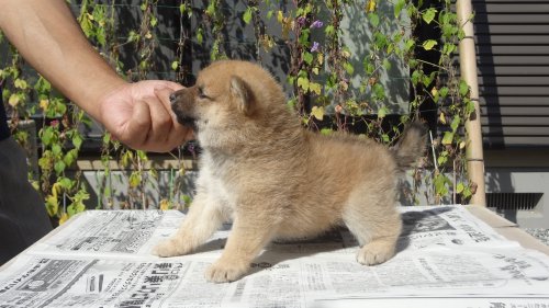 初めて見学で伺った際に、並んで日向ぼっこをしている親犬たちを見て、その時点で高橋さんなら安心だと感じました。事前に希望していたこともあり、母犬と父犬を先に見せていただきましたが、母犬のあまりの人懐こい性格にやられてしまい、実は子犬を見る前に是非譲っていただこうという気持ちになっておりました。 見学の時、譲渡の時といろいろな話をさせてもらい、小さな気付きなども折り込んで教えてもらえるのでやはり柴犬ならこうした専門の方が信頼出来ます。 子犬が我が家に来て二週間が経ち、きょうだいのなかでも一回り小さかったこともあり、やはり成長もやや遅い感じではありますが、母性を刺激された先住犬が頑張って見守ってくれており、予想外ではあるものの家族全員一安心です。 この度は本当にありがとうございました。この子が幸せになれるよう精一杯向き合っていきます。 なお、今後検討されている方への注意事項をひとつだけ書いておきます。問い合わせや見学希望に対しての高橋さんからの返信は電話です。メールでの返信ではありませんので気を付けてください。(宮城県 男性)