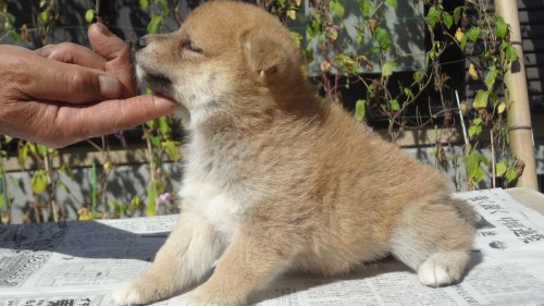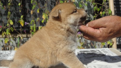 初めて見学で伺った際に、並んで日向ぼっこをしている親犬たちを見て、その時点で高橋さんなら安心だと感じました。事前に希望していたこともあり、母犬と父犬を先に見せていただきましたが、母犬のあまりの人懐こい性格にやられてしまい、実は子犬を見る前に是非譲っていただこうという気持ちになっておりました。 見学の時、譲渡の時といろいろな話をさせてもらい、小さな気付きなども折り込んで教えてもらえるのでやはり柴犬ならこうした専門の方が信頼出来ます。 子犬が我が家に来て二週間が経ち、きょうだいのなかでも一回り小さかったこともあり、やはり成長もやや遅い感じではありますが、母性を刺激された先住犬が頑張って見守ってくれており、予想外ではあるものの家族全員一安心です。 この度は本当にありがとうございました。この子が幸せになれるよう精一杯向き合っていきます。 なお、今後検討されている方への注意事項をひとつだけ書いておきます。問い合わせや見学希望に対しての高橋さんからの返信は電話です。メールでの返信ではありませんので気を付けてください。(宮城県 男性)