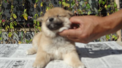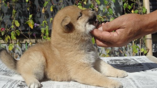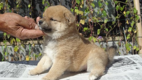 初めて見学で伺った際に、並んで日向ぼっこをしている親犬たちを見て、その時点で高橋さんなら安心だと感じました。事前に希望していたこともあり、母犬と父犬を先に見せていただきましたが、母犬のあまりの人懐こい性格にやられてしまい、実は子犬を見る前に是非譲っていただこうという気持ちになっておりました。 見学の時、譲渡の時といろいろな話をさせてもらい、小さな気付きなども折り込んで教えてもらえるのでやはり柴犬ならこうした専門の方が信頼出来ます。 子犬が我が家に来て二週間が経ち、きょうだいのなかでも一回り小さかったこともあり、やはり成長もやや遅い感じではありますが、母性を刺激された先住犬が頑張って見守ってくれており、予想外ではあるものの家族全員一安心です。 この度は本当にありがとうございました。この子が幸せになれるよう精一杯向き合っていきます。 なお、今後検討されている方への注意事項をひとつだけ書いておきます。問い合わせや見学希望に対しての高橋さんからの返信は電話です。メールでの返信ではありませんので気を付けてください。(宮城県 男性)