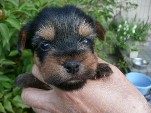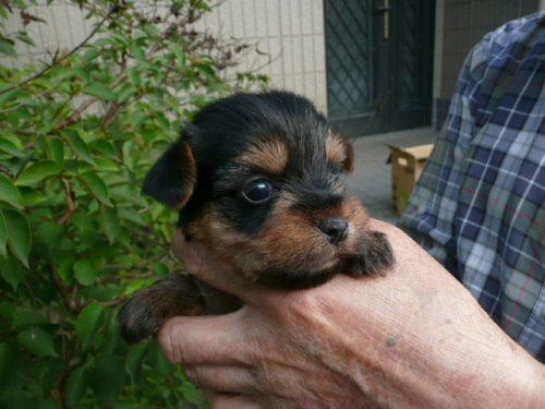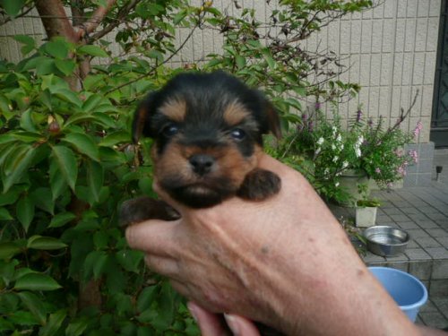 | コメント | お母さんは当犬舎の犬で体重は2.7kg、お父さんは都内某有名犬舎の犬で体重は2.5kgです。 この子のお母さんはいつもきれいな子犬を生んでくれます。 今回は牡2、牝1の3頭を生みました。 この子の体重は9/22(生後26日目)現在で480gです。 この子の特徴はきれいなタンカラーと少し太めのボディにあります。 大きなきれいな目をしています。脚が短めで愛嬌があります。 3頭ともすごく元気で相撲を取ったり、押しくらまんじゅうをしたりしています。 まだ幼くて性格まではわかりませんがかわいいヨーキーに成長してくれると思います。 |
