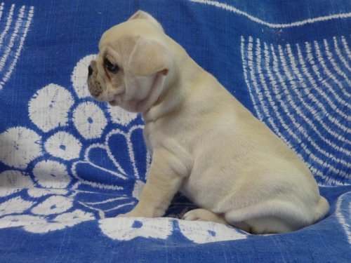 | コメント | 父親:JKCチャンピォンの孫 クリーム 母親:三ヶ国チャンピォンの直子 ブリンドル この子達も将来が楽しみです。 食欲も旺盛で、毎日兄妹犬と元気に仲良く遊んでいます。 家族で育てているので、人間大好き! 本当に人懐っこい子です☆ とっても愛くるしく可愛い子ですよ。 (写真と動画はH27.9,24に撮影したものです) 見学歓迎! ご希望の方は2~3日前迄にご予約ください。 |