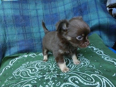 チワワ(ロング) チョコタン 気品 チビ 五郎丸君 ♂(男の子) 静岡県【 ブリーダーズ 】