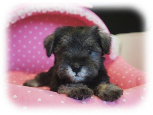 | 毛色 | ソルト&ペッパー(両親JKCチャンピオン・東京目黒区でもご見学可能です) | 出生地 | 大阪府 | |