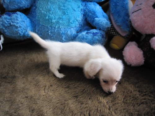 | コメント | とっても綺麗なピュアクリームの女の子です。 ほぼホワイトに近い希少なカラーです。 健康状態良好で嚙み合せや尻尾曲がり、ヘルニアなどの欠点はありません。 自然に囲まれた環境の中、親・兄妹 そして私達家族と一緒にすくすく成長しております。 離乳後は、兄妹・犬舎の他の子犬達と一緒に生活します。 遊びを通じて犬同士の付き合い方をしっかりと学びます。 人間と接する事が多く 人懐こい性格になると思います。 ご希望の方には、最新の写真をお届けいたしますので、 ご遠慮なくお知らせください。 見学も歓迎いたします。(要 事前連絡をお願いします。) 各種カードもご利用になれますのでご相談ください。 |
