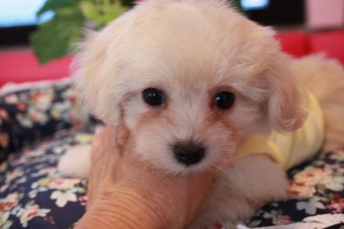 | コメント | 可愛い子です。 母 プードル 2.8kg 父 マルチーズ 1.6kg フワフワの足の短い可愛い子です。 写真よりかわいいこです。 短い脚でかけてくる姿サイコーですよ。 今はやりのミックスちゃんぜひ良い家族になること 間違いなしです |