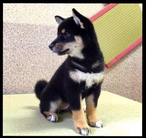 子犬を迎え入れてから1週間がたちましたが、夜鳴き、トイレトレーニングの苦労など全くしていません。とても賢い子で驚かされてばかりいます。黒柴には珍しい柄の入り方に一目惚れをして決めたのですが、性格も穏やかで最高です。この子に決めて本当に良かったです。 津守さんは、凄腕ブリーダーだと思います。これからも的確なアドバイスをよろしくお願いします。 (大阪府 女性)