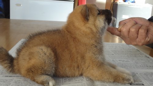 初めて見学で伺った際に、並んで日向ぼっこをしている親犬たちを見て、その時点で高橋さんなら安心だと感じました。事前に希望していたこともあり、母犬と父犬を先に見せていただきましたが、母犬のあまりの人懐こい性格にやられてしまい、実は子犬を見る前に是非譲っていただこうという気持ちになっておりました。 見学の時、譲渡の時といろいろな話をさせてもらい、小さな気付きなども折り込んで教えてもらえるのでやはり柴犬ならこうした専門の方が信頼出来ます。 子犬が我が家に来て二週間が経ち、きょうだいのなかでも一回り小さかったこともあり、やはり成長もやや遅い感じではありますが、母性を刺激された先住犬が頑張って見守ってくれており、予想外ではあるものの家族全員一安心です。 この度は本当にありがとうございました。この子が幸せになれるよう精一杯向き合っていきます。 なお、今後検討されている方への注意事項をひとつだけ書いておきます。問い合わせや見学希望に対しての高橋さんからの返信は電話です。メールでの返信ではありませんので気を付けてください。(宮城県 男性)