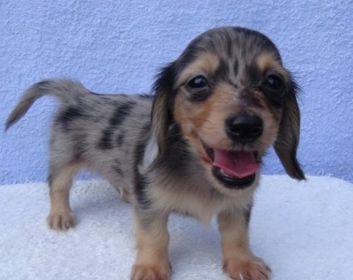 | コメント | 父 ミニチュアダックス ブラッククリーム 母 ミニチュアダックス シルバーダップル 小ぶりな両親からとっても可愛い3兄妹が誕生しました。 10/21頃 初回ワクチン接種・健康診断予定。 今のところ欠点など特にございません。 離乳食も良く食べ、すくすくと元気に成長しております。 ダップル模様も綺麗に入っており、バランス良く可愛らしい子です。 好奇心旺盛のやんちゃ坊主。 走り回って遊ぶのが大好きです。 10/24以降、お迎え可能となります。 土曜・日曜・祭日のご見学大歓迎です。 自宅リビングにてのご対応となりますので、事前にご予約をお願い致します。 |