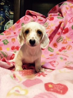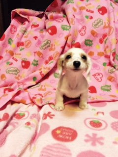 | コメント | 珍しいクリームパイボールドの可愛い赤ちゃん生まれました。 テッキング(点々)が、出にくいタイプになります。 小ぶりな母犬から生まれた、小ぶりな女の子です。 是非見学にいらしてご覧になってください。 写真よりずっとかわいい子です。 人と違った可愛いダックスをお探しの方に。 6種ワクチン接種済み、健康診断済みですのでいつでもお渡しできます。 ワクチン代、お届けにかかる費用は、別途お願いします。 お気軽にお問い合わせください。 |