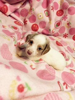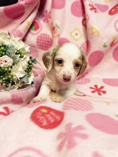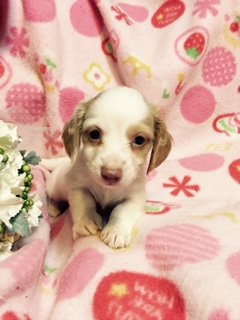 | コメント | 珍しいクリームパイボールドの可愛い赤ちゃん生まれました。 テッキング(点々)が、出にくいタイプになります。 温和な可愛い男の子です。 是非見学にいらしてご覧になってください。 写真よりずっとかわいい子です。 人と違った可愛いダックスをお探しの方に。 6種ワクチン接種後、健康診断後のお渡しになります。 ワクチン代、お届けにかかる費用は、別途お願いします。 お気軽にお問い合わせください。 |
