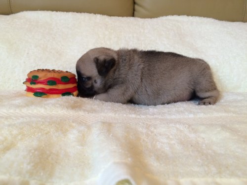 パグの飼育歴は30年以上になります。今年親の代から買っていた 黒パグを亡くしてから家を埋め尽くしているパググッズを見るたびに いつか新しい仔を迎えたいと思うようになりました。 北関東でブリーダーさんを探しているうちに木村様を知り、見学、購入の運びとなりました。 このたび性格も大変おおらかな素晴らしい仔犬をお譲りいただき大変感謝しております。 (茨城県 男性)