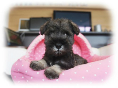 シュナウザーを主力にされているブリーダーさんだと認識しており、ボスちゃんはどうかなあと正直不安でしたがとても可愛く健康的なボスちゃんをいただきました。 掲載されていた写真より実物は想像以上に可愛くて即決し見学させていただいたその日に連れて帰りました。連絡をして、翌日行きますぅって勝手な申し出にも関わらず敏速かつ親切に対応して頂き大満足です。契約に対しても一つ一つ丁寧に説明してくださり、わかりやすかったです。この度は可愛いボスちゃんとのご縁をいただき、本当に有り難うございました。 (大阪府 女性)