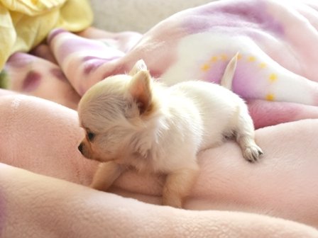 小さめのチワワを探していたところ、山田ブリーダー様の子犬をみつけ、あまりの可愛さにすぐに問い合わせをしました。 山本ブリーダー様は見学希望やこちらの質問にも丁寧に答えて下さり、子犬の可愛さと山田ブリーダー様のお人柄の良さで購入を決めました。 迎えた子犬は人懐っこく、夜泣きもなく、とても小さいのにケージで粗相をする事も1度もありません。子犬の両親にも会わせていただいたのですが、とても良いコたちで、 山田ブリーダー様がどれだけ犬に愛情をかけて清潔な環境で子犬を育ててきたかが良くわかります。 山田ブリーダー様から子犬を迎えて、本当に良かったと思います。 いろいろありがとうございました!また何かありましたらよろしくお願いいたします!(神奈川県 女性)